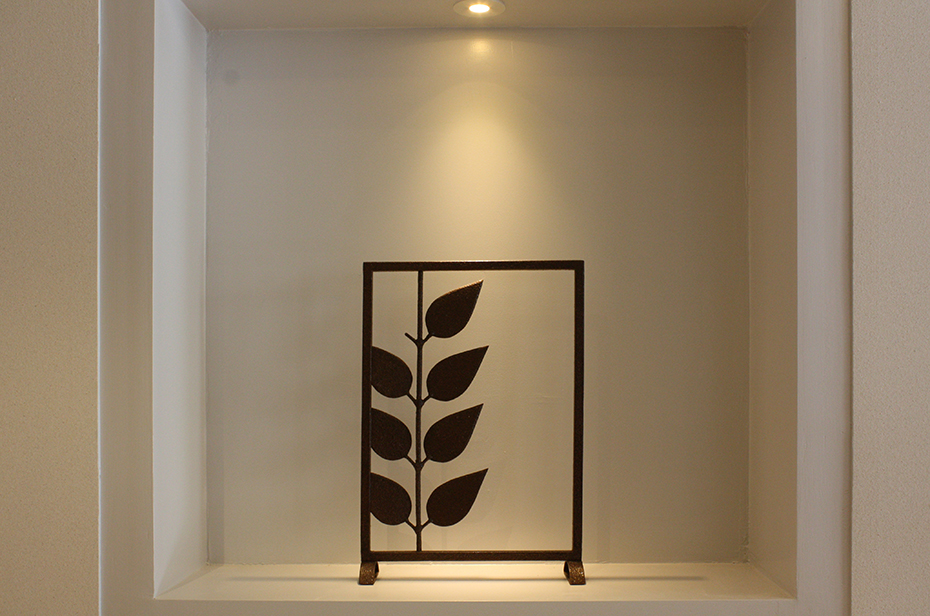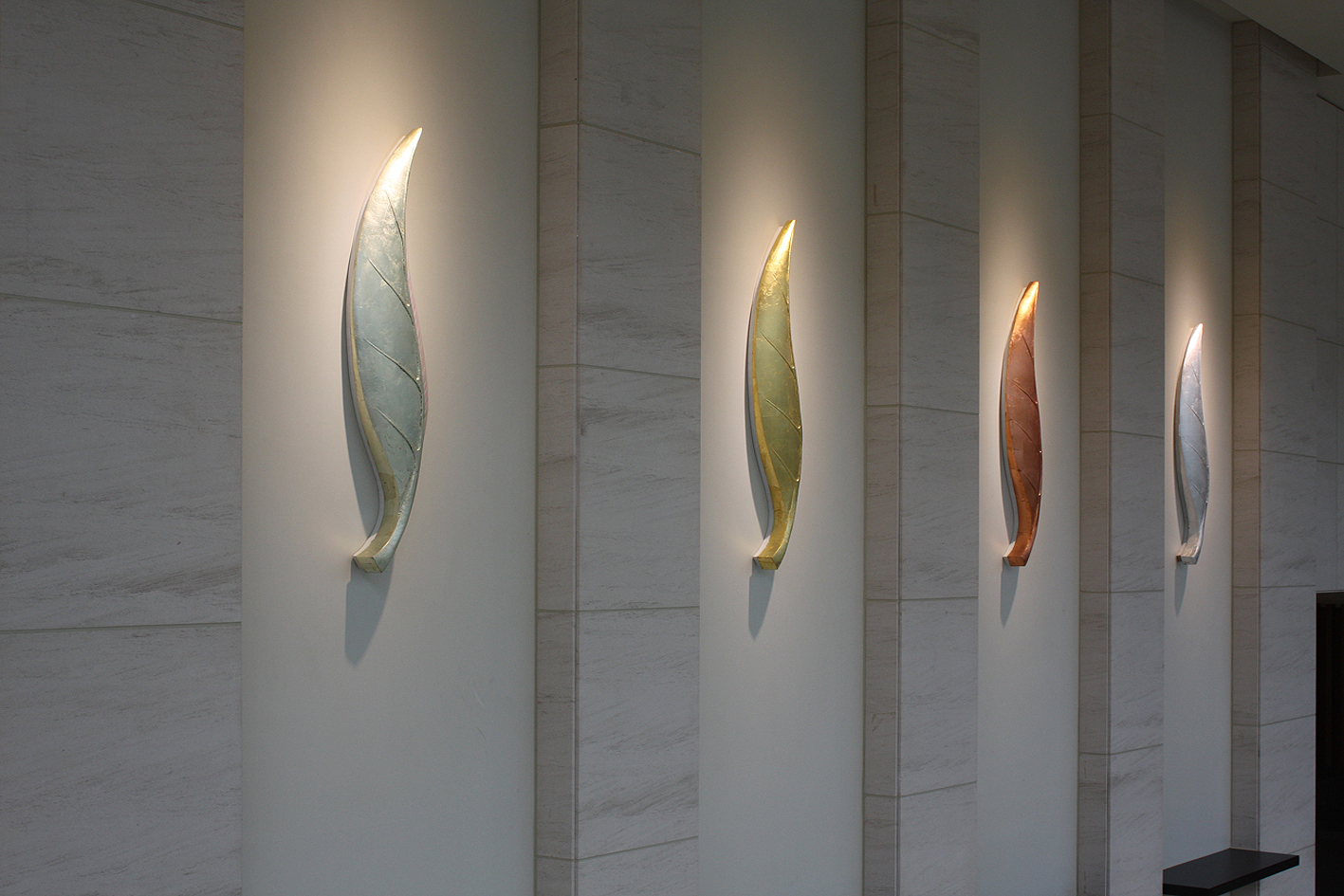 素材:木に塗装+箔 設置場所:エントランスホール壁面
