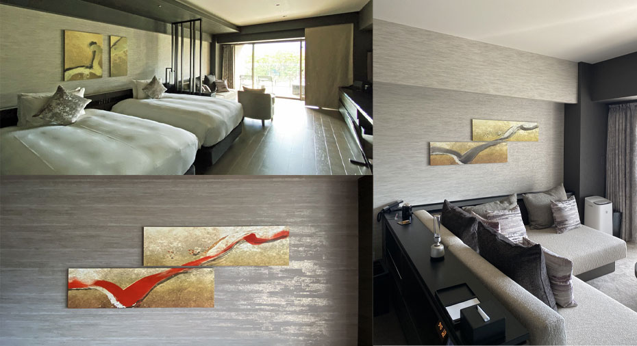 素材:パネル+和紙+アクリル絵の具 設置場所:客室